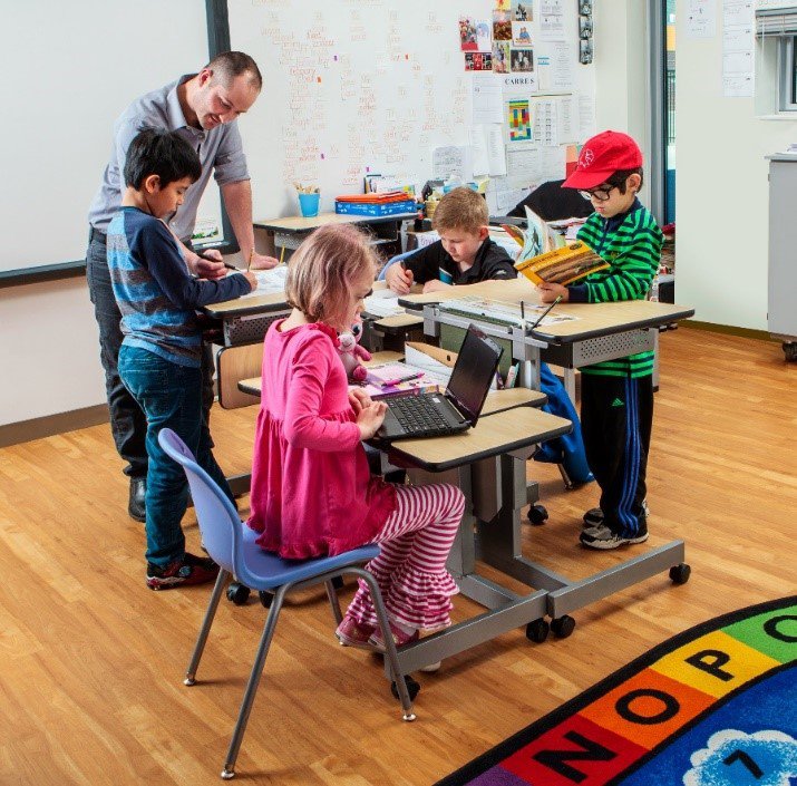 The classroom of the future has arrived, where non-disruptive movement is embraced as a way to enhance children’s learning and health. Schools that provide sit/stand furniture options will see positive results, so long as they make choices that support the varying needs of all children.